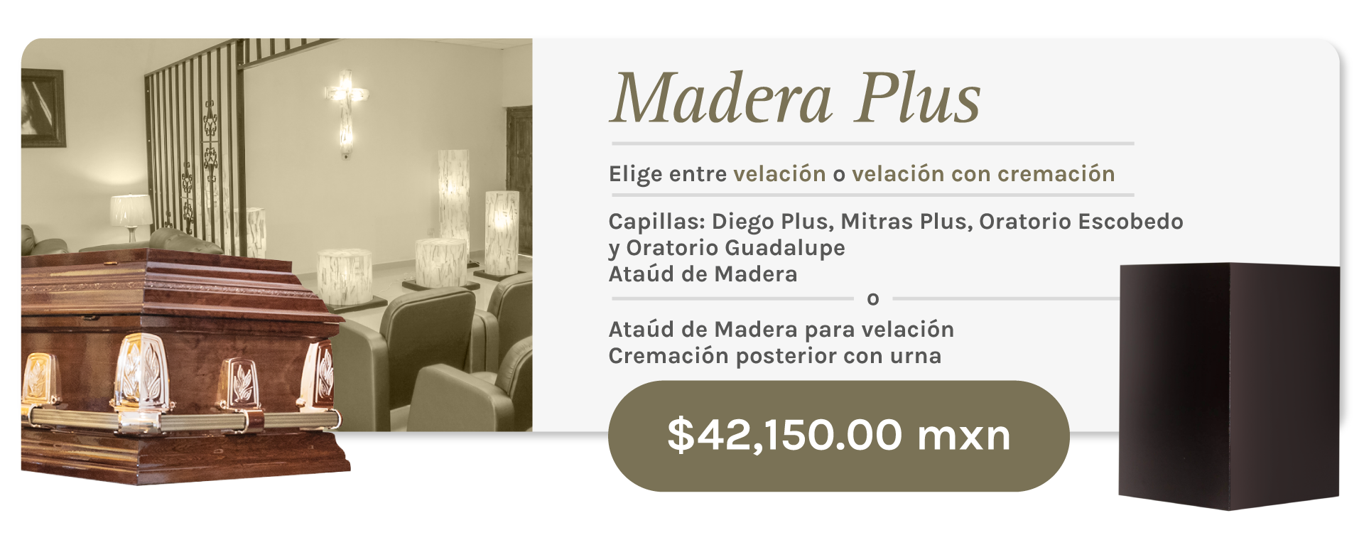B. Servicio de Velación en Ataúd de Madera (sólo para velación) con posterior cremación y urna incluida.